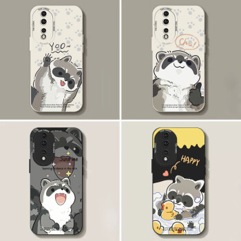 Honor 90 Phone Case Honor90Pro New Cartoon Cute Raccoon Silicone All-Inclusive Anti-fall Soft Case Ultra Thin Creative Tide Brand Internet Celebrity Funny Men and Women Honor 90 Antique White - Starry Sky Raccoon Black + Film